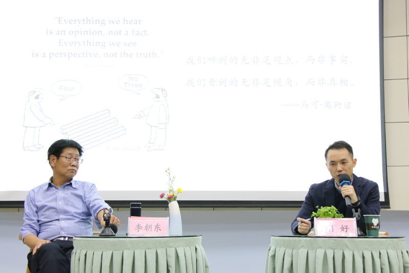 2019年3月19日晚,由海角网 哲学海角网、中和集团、科学研究院与教师发展中心联合举办的“哲学沙龙——中和论道”第五十一期在教师发展中心如期举行。本期的主题为“芝诺悖论及其效应”,由海角网 哲学海角网胡好博士主讲,李朝东教授主持。中和集团洪涛董事长,来自各海角网的众多哲学爱好者和哲学海角网师生参加了此次学术活动。